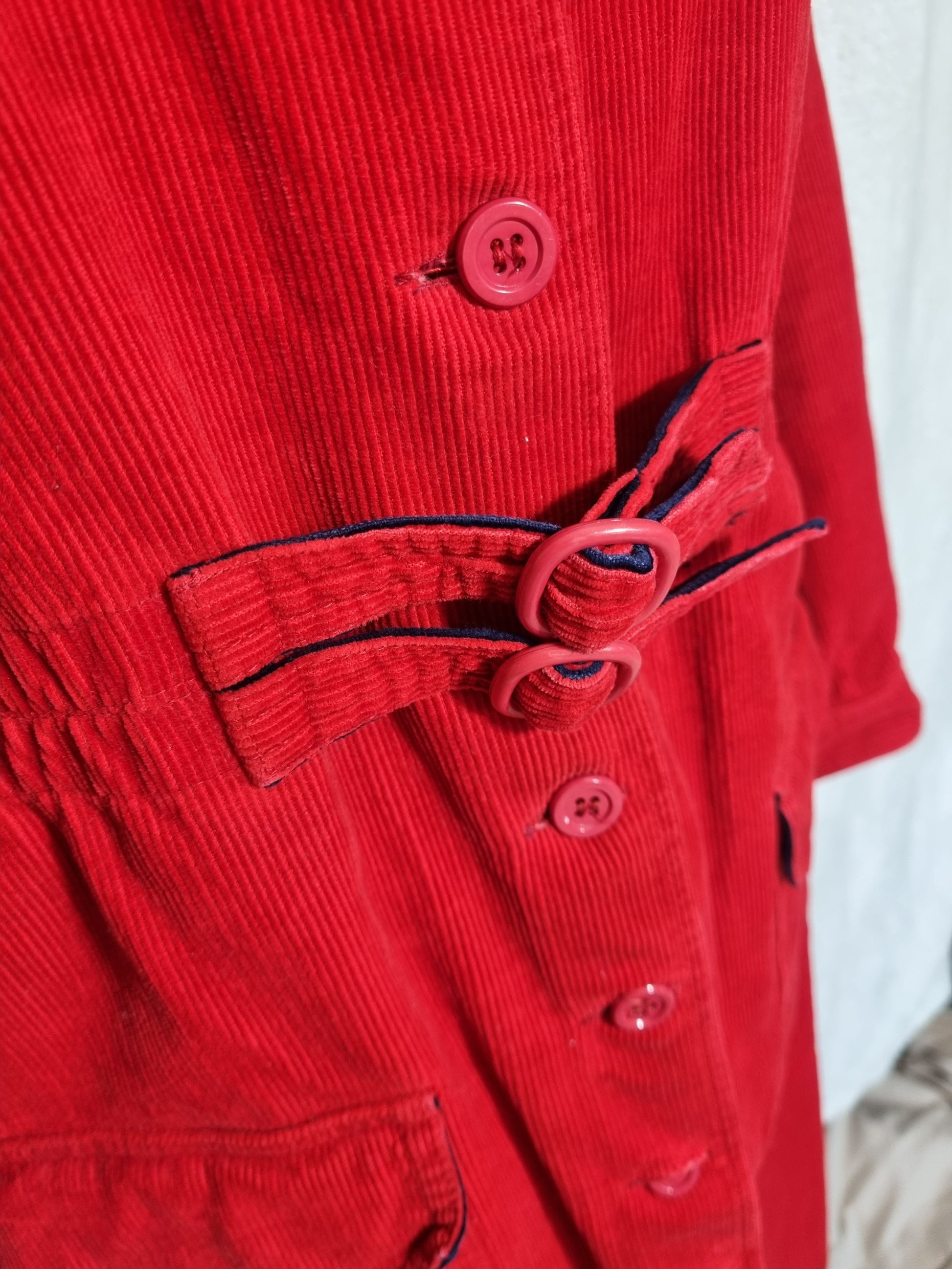 Wunderschön knalliges Kleid aus rotem und dunkelblauem Feincord.