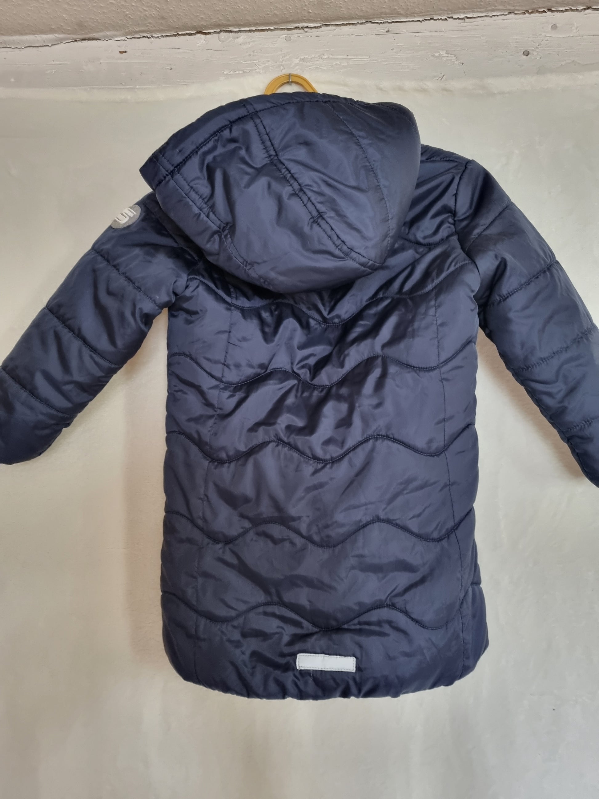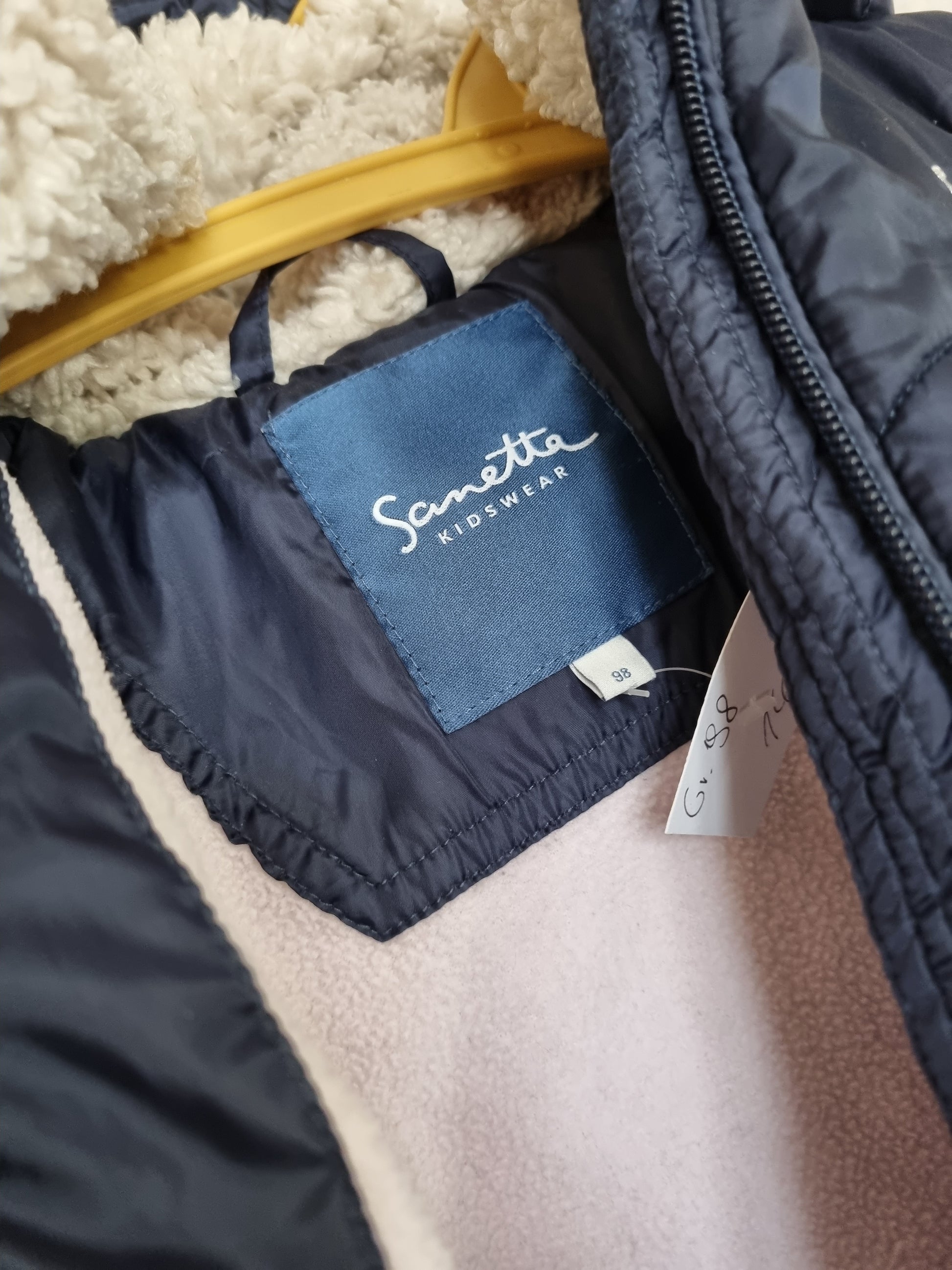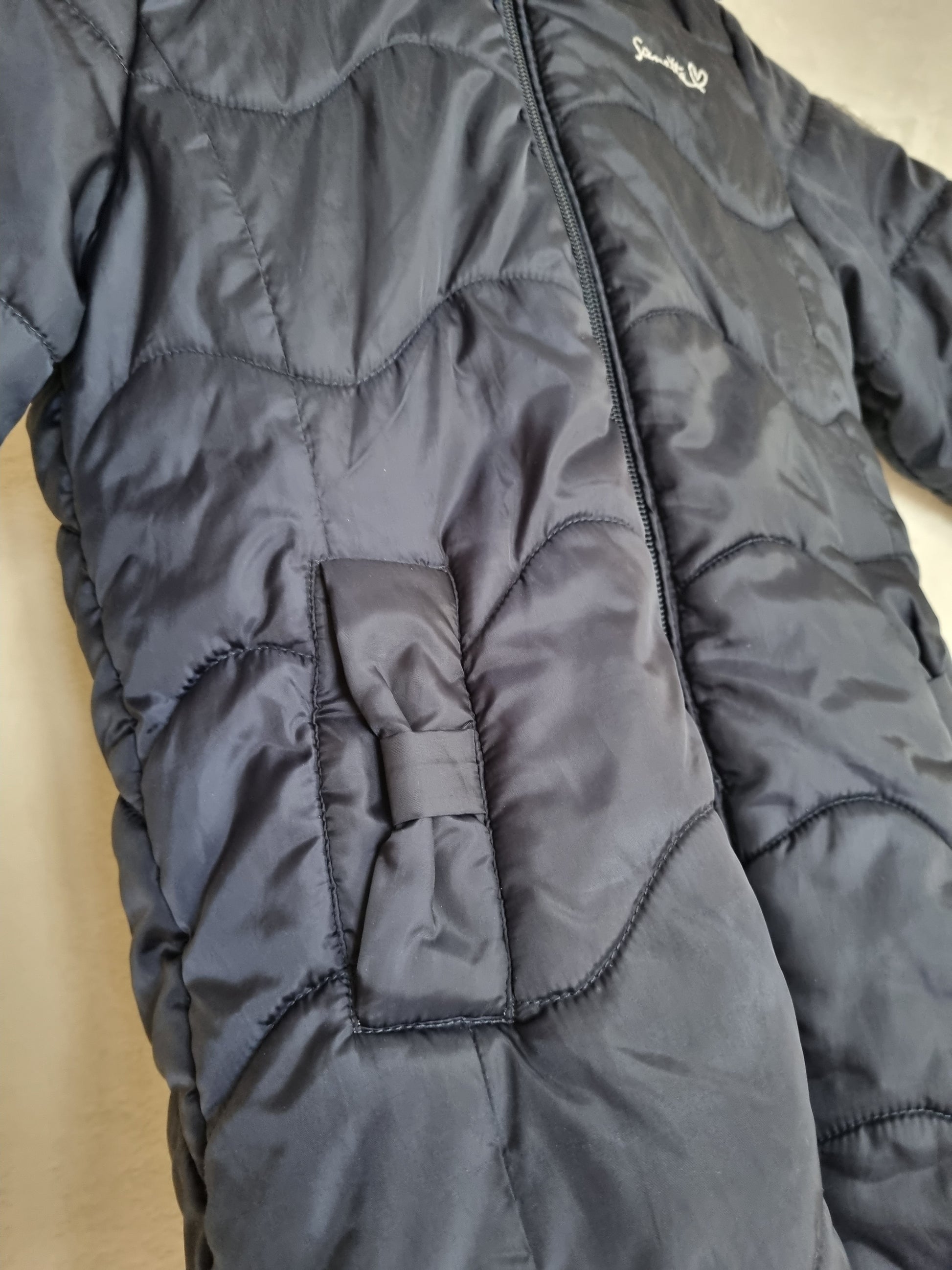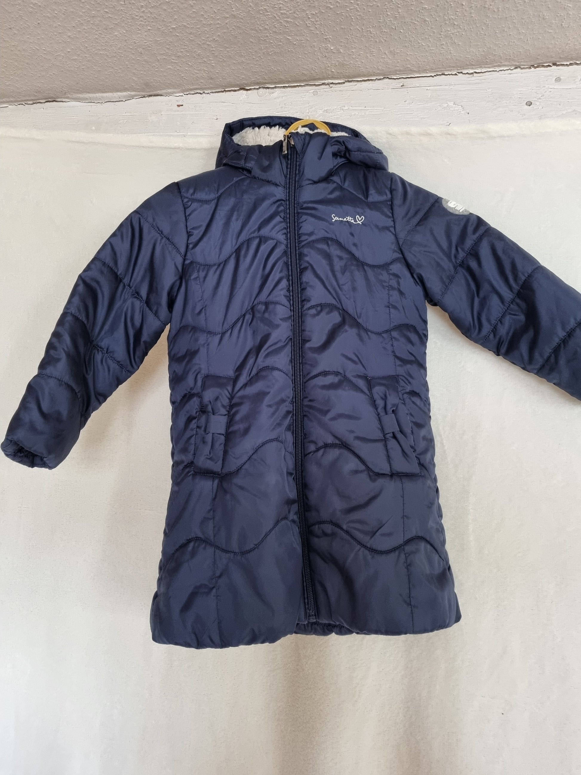 Süßes Mäntelchen welches schön warm hält. Im oberen Bereich innen mit Fleece gefüttert und in der Kapuze ist ein weiches Teddyfutter.
